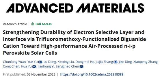 近日,三亿体育_三亿(中国)一站式服务官方网站材料科学与工程学院陈江照教授、于月教授团队在材料顶刊《AdvancedMaterials》上以“StrengtheningDurabilityofElectronSelectiveLayerandInterfaceviaTrifluoromethoxy-functionalizedBiguanideCationtowardHigh-performanceAir-processedn-i-pPerovskiteSolarCells”为题发表最新研究成果,昆明理工...