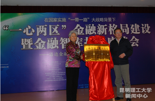 会议举行金融智库揭牌仪式。我校“云南金融工程研究院”由程映萱会长与周荣书记共同揭牌,云南金融工程研究院正式成立。该研究院是依托泛亚金融工程院,由云南省金融办与我校联合共建的云南省金融智库之一,将致力于金融大数据及相关金融工程方面的研究。一方面,它将成为我省沿金综改区金融改革的发展战略智囊库之一,提供金融工程方面的智力、科研与人才支持;另一方面,它将形成我校金融工程领域专业化、集中化和开放化的研究平台及人才培养平台,丰富和完善我校学科构成,提高金融及相关专业的科研和学科发展水平。