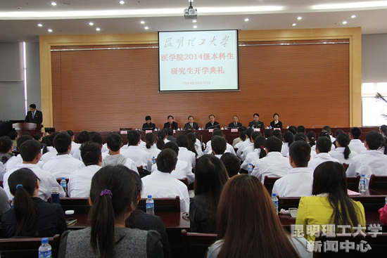 10月25日上午,我校医学院在呈贡校区办公大楼15楼报告厅举行2014级本科生、研究生开学典礼。