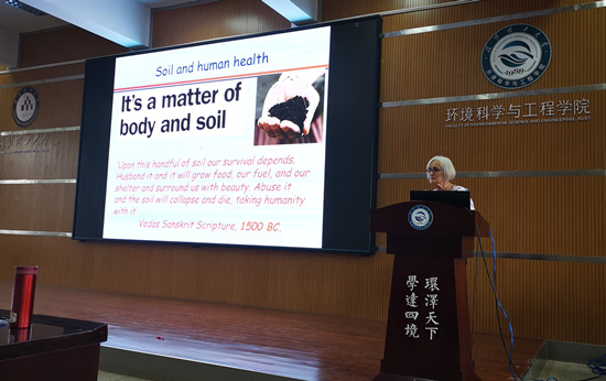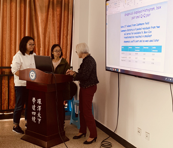 26日上午,Oliver教授在环境楼作了题为"Food Security,precision agriculture and geostatistics"和"Soil organisms and pollutants,and consequences for human health"的两个专题报告,介绍了精准农业(PA)、地质统计学与人体健康相关的知识,并详细阐释了不同样方设置和样点选择带来的结果差异。针对土壤科学与人体健康,Oliver教授结合自身研究经历,对土壤与人体健康之间复杂的关系进行了充分阐释,为师生带来了全新的思考。两场精彩的学术报告,为拓宽师生的科研视野、激发学生的科研兴趣起到了积极作用。