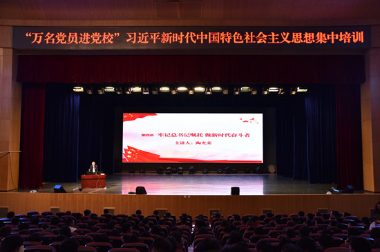 5月5日下午,校党委常委、纪委书记陶光荣在呈贡校区红土会堂为师生讲授“牢记总书记嘱托,做新时代的奋斗者”专题党课。研究生院教工党支部全体党员、研究生党支部书记代表以及纪检监察室党支部、各研究生培养单位研究生辅导员、全校本科生辅导员、机电学院博士党支部全体党员、研究生党员发展对象和入党积极分子等共1100余人聆听了讲座。