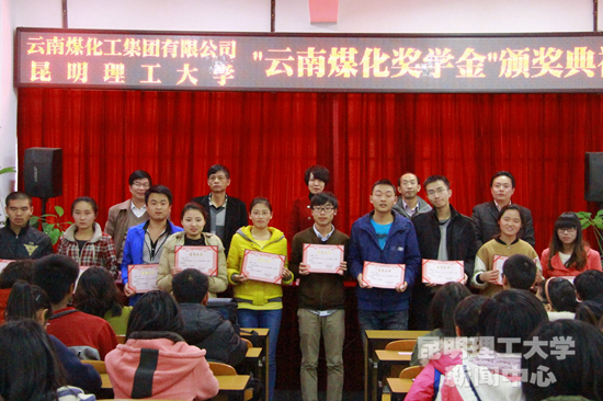云南煤化集团于2008年在我校设立“云南煤化奖学金”,每年出资不低于5万元,用于奖励我校相关专业高年级学生中关注煤化工事业发展的优秀学生。
