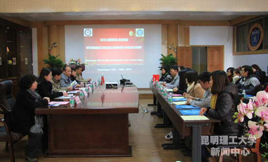 12月18日上午,2013汉语桥—越南大学生冬令营开营仪式在我校莲华校区国际学院301室举行。副校长程赫明出席仪式并致辞。