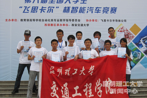 由教育部高等教育司主办的第八届全国大学生“飞思卡尔”杯智能汽车竞赛西部赛区的比赛日前在西安交通大学举行。由我校交通工程学院派出的代表队“云鹰”队获二等奖,“Faith*寻”队和“Turing”队同获三等奖。迄今为止,我校已累计派出18支参赛队70余名同学参加了此项比赛,共获得全国二等奖1项,赛区一等奖1项、二等奖5项、三等奖8项、优胜奖1项。