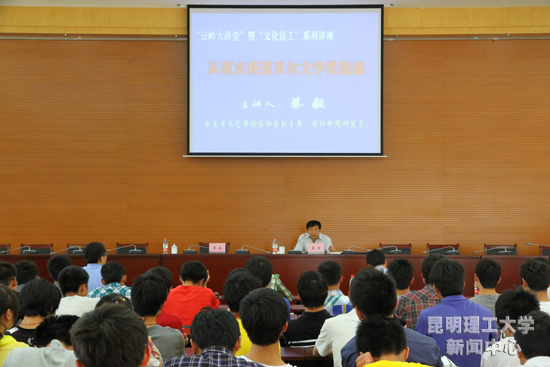 5月16日下午,“云岭大讲堂”暨“文化昆工”系列讲座第八讲如期开讲,云南省社科院的蔡毅研究员为我校师生作了题为“从莫言获诺贝尔文学奖说起”的专题讲座。讲座由省委宣传部、省社科联和我校党委宣传部主办,校学生处协办,各学院师生代表200余人聆听了讲座。