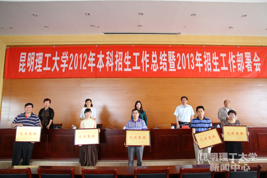 5月20日上午,三亿体育_三亿(中国)一站式服务官方网站在呈贡校区办公大楼15楼会议室召开会议全面总结2012年本科招生工作,安排部署2013年本科招生工作。校长张英杰,副校长彭金辉,纪委书记李莉,副校级领导宋焕斌出席会议,并为获2012年本科招生先进集体和本科招生专业综合评比优胜奖颁奖的单位颁奖。彭金辉副校长主持会议。