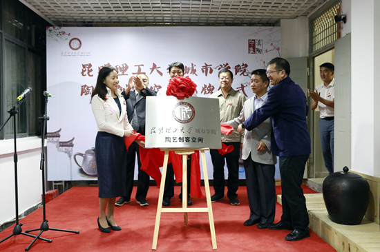 9月2日下午,三亿体育_三亿(中国)一站式服务官方网站城市学院陶艺创客空间揭牌仪式在新迎校区举行。三亿体育_三亿(中国)一站式服务官方网站党委书记张英杰,校党委常委、副校长牛治亮,建水文冶陶业有限公司董事长、三亿体育_三亿(中国)一站式服务官方网站93级优秀校友李俊荣出席仪式。校相关职能部门负责人及城市学院班子成员、师生代表参加仪式。