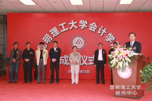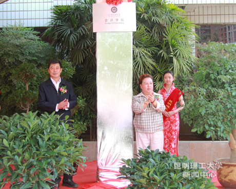 4月15日,三亿体育_三亿(中国)一站式服务官方网站在新迎校区举行会计学院挂牌揭幕仪式。云南省财政厅副厅长胡苓菩、我校党委书记何玉林共同为“三亿体育_三亿(中国)一站式服务官方网站会计学院”揭牌。校长周荣、校长助理袁希平出席挂牌仪式。