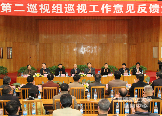 省委第二巡视组组长王建明、副组长崔晶、省委巡视工作领导办公室副主任张鸿建,省委第二巡视组成员张森、郭平、莫绍华、蒋骅,省委巡视办罗孝礼,我校校级领导,校长助理,原校级老领导,学院、部门正职领导,民主党派主要负责人共100余人参加反馈大会。