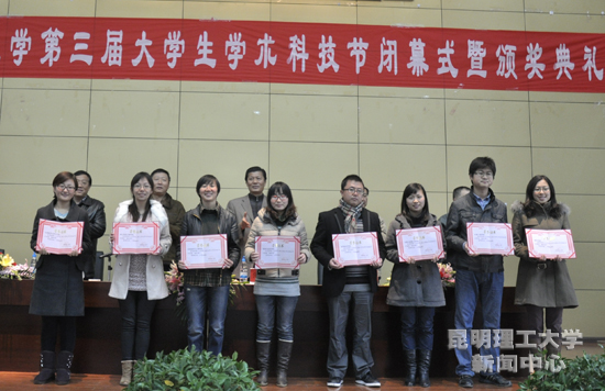 12月1日下午,我校第三届大学生学术科技节闭幕式暨颁奖典礼在呈贡校区后勤一号楼报告厅举行。校党委副书记张劲松出席并为获奖学院、个人颁奖。