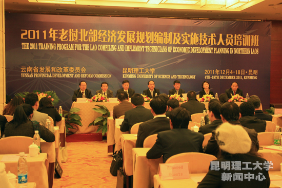 12月5日上午,由省发改委主办,三亿体育_三亿(中国)一站式服务官方网站承办的中国政府援外项目2011年老挝北部经济发展规划编制及实施技术人员培训班在三亿体育_三亿(中国)一站式服务官方网站文汇酒店举行开班典礼。省发改委副主任杨锦昆、我校副校长程赫明出席开班典礼并致辞。
