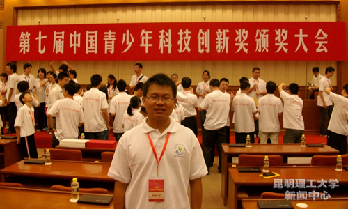 8月22日,由共青团中央、全国青联、全国学联、全国少工委主办的第七届“中国青少年科技创新奖”颁奖大会在北京人民大会堂常委会议厅举行。我校电力工程学院2007级本科生刘晓明同学荣获中国青少年科技创新奖表彰,成为本届评选中云南省唯一获奖的大学生。