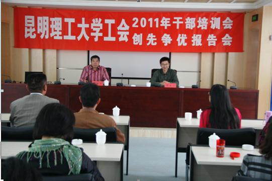 4月22至23日,校工会在澄江举行工会干部培训会和“创先争优”报告会。会议邀请l了我校国土资源工程学院教授、国家住建部世界遗产知名专家梁永宁作报告,并参观了澄江化石馆。90余名工会干部参加了培训。