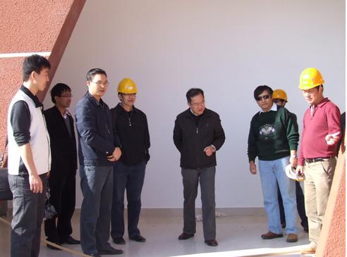 周荣校长先后深入到学生会堂、图书馆、化工学院、生科学院、农工学院、环工学院、交通学院、南区学生宿舍B区等工地现场调研工程进度情况及在建设过程中存在的问题。在工地现场,周校长与施工单位项目负责人进行了交谈,询问建设过程中还面临哪些问题、存在哪些困难,并要求指挥部加强与施工单位之间沟通,积极克服困难,保证建设工期及工程质量。
