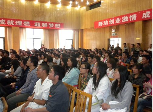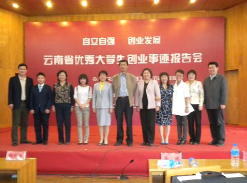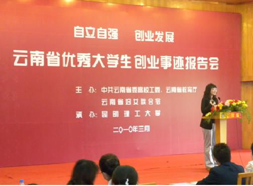 2010年3月17日下午,云南省大学生创业事迹报告会在我校莲华校区图书馆报告厅隆重举行,五位青年创业精英为我校师生带来了一场精彩的创业事迹报告。此次报告会由云南省高校工委、省教育厅、省妇女联合会主办,我校学生就业指导服务中心承办。省委高校工委副书记陶晴、省妇联副主席郑露以及省教育厅、省妇联相关职能部门的有关负责同志出席。报告会由校党委张劲松副书记主持。我校300余名师生参加了此次报告会。