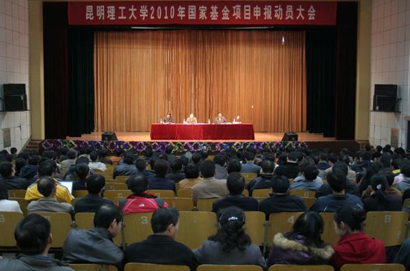 2009年12月30日下午,我校在莲华校区大礼堂召开2010年国家基金项目申报动员大会。校长周荣出席会议并作动员报告,各学院及相关部门负责人,全校副高级以上职称、具有博士学位的教师近400人参加。