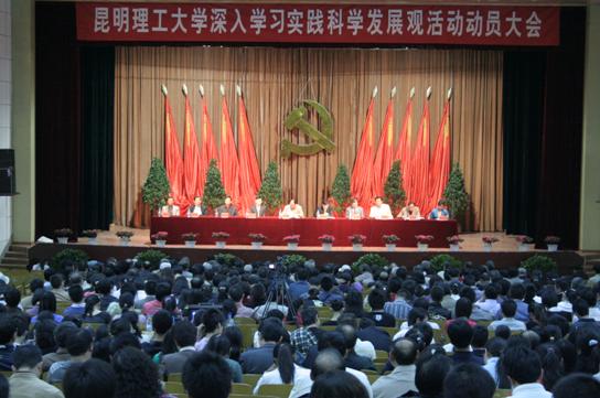 根据中共中央、云南省委关于开展深入学习实践科学发展观活动的安排部署,在省委深入学习实践科学发展观活动指导检查第十二组指导下,按照《中共三亿体育_三亿(中国)一站式服务官方网站委员会关于开展深入学习实践科学发展观活动实施方案》要求,我校于2009年3月23日下午,召开深入学习实践科学发展观活动动员大会。