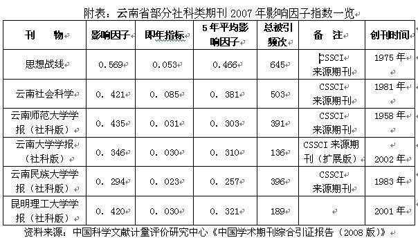 我校学报(社科版)创刊7年来,2007年影响因子居云南省社科类学报第四位,居全国85种理工类社科版学报第十二位,较2006年提高了十六位。