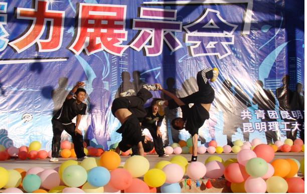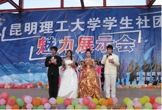 下午3点,学生社团魅力展示会文艺演出随之在呈贡校区食堂二楼广场举行。演出在和谐社eight乐队的一曲悠扬的《白鸽》声中拉开序幕,管经学院辩论协会的舞蹈《歌舞青春》动感十足,彰显了大学生的青春活力;文学爱好者协会选送的舞台剧《同桌的你》充满清新的气息,把同学们带回到青涩的学生时代;机电学院艺术团钟雨龙的歌曲《当爱变成习惯》更是在现场掀起了一阵热浪,引来了观众的欢呼和掌声;武术协会气势磅礴的武术表演渗透出中国武术的博大精深;青年志愿者协会的舞台剧《生死不离》表现了全国人民在5.12地震中的坚强不屈和团结;交通学院社团部选送的歌曲《beautiful》旋律悠扬,引人入胜;心文化协会的话剧《一世亲情》寓意深刻,引起同学们的共鸣;轮滑社的轮滑表演充分展示了轮滑的魅力,让人叫绝;三栖人文化联盟的cosplay表演使到场的动漫爱好者大饱眼福;法学院演讲与辩论协会选送的歌曲《雨中飘荡的回忆》旋律优美,使人仿佛置身于浪漫的雨天;街舞协会活力四射的街舞表演给观众带来了富有冲击力的视觉盛宴;机电学院的话剧《不屈的生命》引人入胜,展现了当代大学生坚强的风采;环工学院的环保时装展将环保与表演完美结合,用独特的创意宣传了环保;随后的《单身情歌》、《星空下的温柔》等歌曲又引来了观众的一片叫好,最后,活动在舞蹈协会的节奏欢快的舞蹈《欢聚》中、在社团人的共同美好期望中圆满结束。