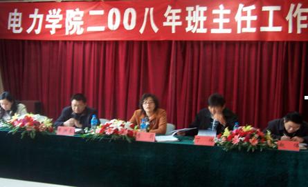 3月28日,电力工程学院2008年班主任工作研讨会在学院3楼多媒体教室隆重召开。副校长李莉、学生处处长丁炜到会并作了重要讲话,学院党政领导、系主任、学工办全体人员、各班班主任参会。