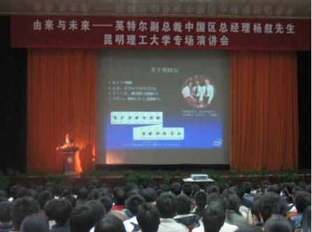12月13日19:00,英特尔公司全球副总裁兼中国区总经理杨叙先生来我校莲华大礼堂作题为“由来与未来”的专场演讲会。副校长李莉出席演讲会。大礼堂座无虚席。会后,李莉副校长代表三亿体育_三亿(中国)一站式服务官方网站向杨叙先生赠送了纪念品。演讲会由团委书记郭华主持。
