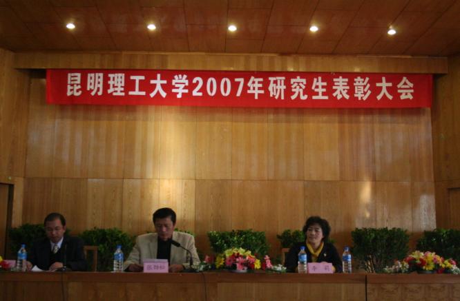12月20日下午,研究生部在莲华校区图书馆报告厅召开了2007年研究生表彰大会。校党委副书记张劲松、副校长李莉及研究生部党委领导、各研究生培养单位主管研究生工作的院领导、研究生教育办公室主任、辅导员、全体获奖研究生参加了会议。