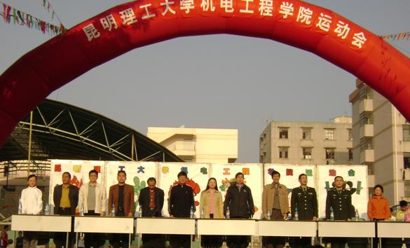 10月27日上午9:00,机电工程学院运动会在莲华校区运动场拉开帷幕。校工会主席曹建军、校团委书记郭华、学生处副处长董绍纶、校工会副主席黄天敏、成都军区驻昆选培办寇干事、古干事及学院全体党政领导、班主任、教职工方队、研究生方队、本科生方队出席了开幕式,开幕式由机电工程学院副书记陈咏梅主持,院长迟毅林做开幕式致词,院党委书记康昭荣宣布运动会开幕,顿时礼花齐放,场面异常壮观。在简短的领导讲话,裁判员、运动员宣誓之后,各代表队运动员纷纷入场,正式拉开运动会竞赛的序幕。