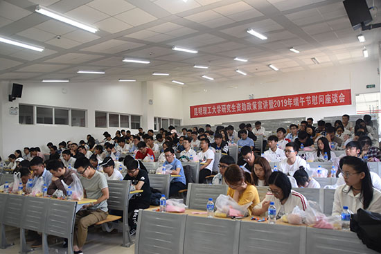 6月6日,三亿体育_三亿(中国)一站式服务官方网站研究生工作部在公教楼530室组织召开研究生资助政策宣讲暨2019年端午节慰问座谈会。研工部全体教师,经济困难研究生近140人参加座谈会。