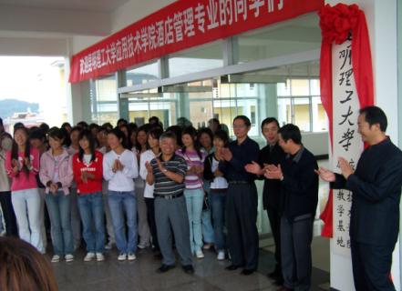 为确保2006级酒店管理专业学生能按期进驻基地,学院先期与腾冲官房酒店进行了多轮的协商和合作。腾冲官房酒店为此投入了大量的人力、物力和财力,经多方努力,建成了包括教学楼、学生公寓、学生活动场地等在内的配套硬件设施,并投入100余万元装修和配置了多媒体教室、计算机房、形体教室、办公用房及相关生活设施。学院领导在教学基地期间,与酒店总经理、部门经理代表和2006级酒店管理专业的学生进行了热烈而融洽的座谈;考察了基地的教学、生活和辅助设施;召开专题会议,对人员配备、教学组织、教学管理及安全稳定工作、学生工作等进行了安排和部署。目前,基地师生情绪稳定、精神饱满、秩序正常、管理就位,教学计划顺利实施。