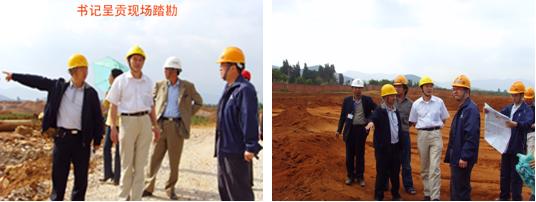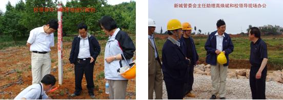 建设现场漫天尘土,何书记一行顶着烈日对目前已开工的总体基础设施及学生社区运动场区场地平整的施工情况,多媒体教学楼、公共基础教学楼、后勤一号楼的施工情况进行了深入的了解,随后何书记对呈贡校区二期998亩地的界址现状进行了踏勘。何书记一行认真听取了田副校长、牛助理及省城投现场管理人员对工程进展情况和目前整个推进过程中存在的问题进行的汇报。