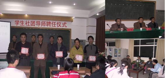 4月10日晚,化学工程学院举行了“2007年度学生社团导师聘任仪式”,校团委副书记郭华,化学工程学院党委书记马应良、副书记齐毅出席了仪式。郭华同志对化学工程学院团委积极探索新途径、新模式等举措给予了充分肯定,希望化学工程学院团委能做好“导师制”的试点工作,不断总结经验,建立起一套具有普遍运用前景、较为完善、成效明显的社团工作机制,为我校开创学生社团工作新局面而努力奋斗。齐毅同志对学院社团工作进行了明确要求,要在院团委的领导和校学生社团联合会的指导下,以“导师制”为契机,切实加强管理、提高活动质量、扩大社团的影响面,建立起一支“自我服务、自我教育、自我管理、自我发展”的社团队伍。
