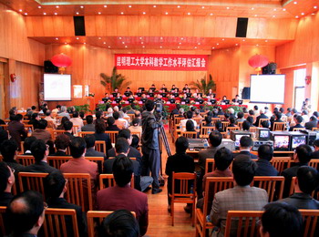 11月7日上午9点,我校本科教学工作水平评估汇报会在莲华校区图书馆报告厅隆重举行,云南省副省长程映萱出席并讲话,何玉林书记致欢迎辞,校长周荣向专家组汇报了我校本科教学工作情况,专家组组长刘献君教授作了讲话。汇报会分两段进行,第一段由云南省教育厅和福生副厅长主持,第二段由专家组组长刘献君教授主持。省政协副主席罗黎辉、李先猷以及省政府办公厅、省教育厅、省科技厅、省财政厅、省发改委等上级部门的领导出席了汇报会,我校全体校领导、离退休老领导、各民主党派代表以及中层干部、师生代表等260多人参加了汇报会。汇报会上,专家们观看了我校本科教学工作专题片。