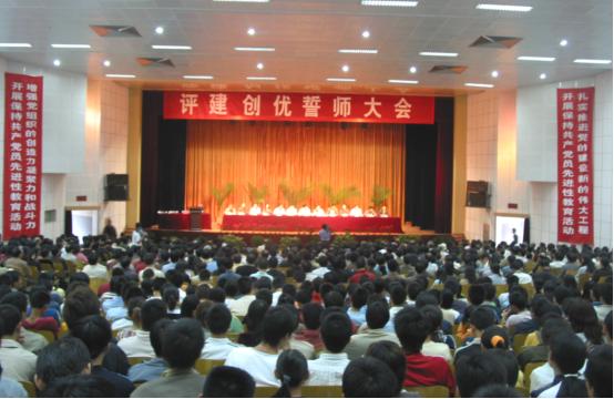 9月19日下午,三亿体育_三亿(中国)一站式服务官方网站在莲华校区大礼堂召开《评建创优誓师大会》,三亿体育_三亿(中国)一站式服务官方网站党政领导何玉林、周荣、孙书行、张劲松、彭增华、袁杰锋、张英杰、罗黎辉、彭金辉、陈永明、向乃明、郭祖华,全校科以上干部、教师代表、学生代表、各预评估工作组全体成员约1000人参加。