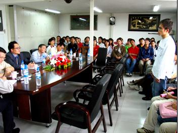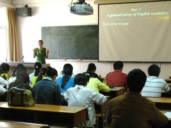 最后,专家还请同学们用英语进行自我介绍。绝大多数同学都显得胆怯,不敢尝试。当专家问有多少人能用英语介绍时,大部分同学都举起了手。专家鼓励同学们:运用英语交流,是一种技能,是一个表现自己的重要方式,希望同学们不要怕说错,要大胆地说,才能提高自己的口头英语表达能力及其应用能力。