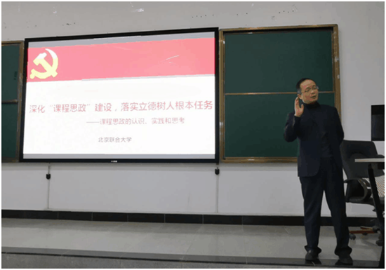孔军副部长为与会教师作了《深化“课程思政”建设,落实立德树人根本任务——课程思政的认识、实践和思考》专题报告。孔军副部长对习近平总书记关于立德树人的重要论述进行了深入解读,并带领大家共同学习有关“课程思政”的重要文件与领导讲话,阐述了对“课程思政”的最新认识。孔副部长还以北京联合大学为例,介绍了开展“课程思政”工作的经验与收获,同时对“深化课程思政建设”“探讨专业思政建设”以及“深化课堂的育人功能”这三方面进行了深入的分析以及案例分享。