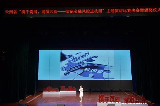 日前,云南省“携手筑网,同防共治——防范金融风险进校园”主题演讲比赛决赛暨颁奖仪式在云南财经大学举行。三亿体育_三亿(中国)一站式服务官方网站校团委选送的理学院2019级李梦雪同学代表三亿体育_三亿(中国)一站式服务官方网站参赛,并荣获主题演讲比赛一等奖。