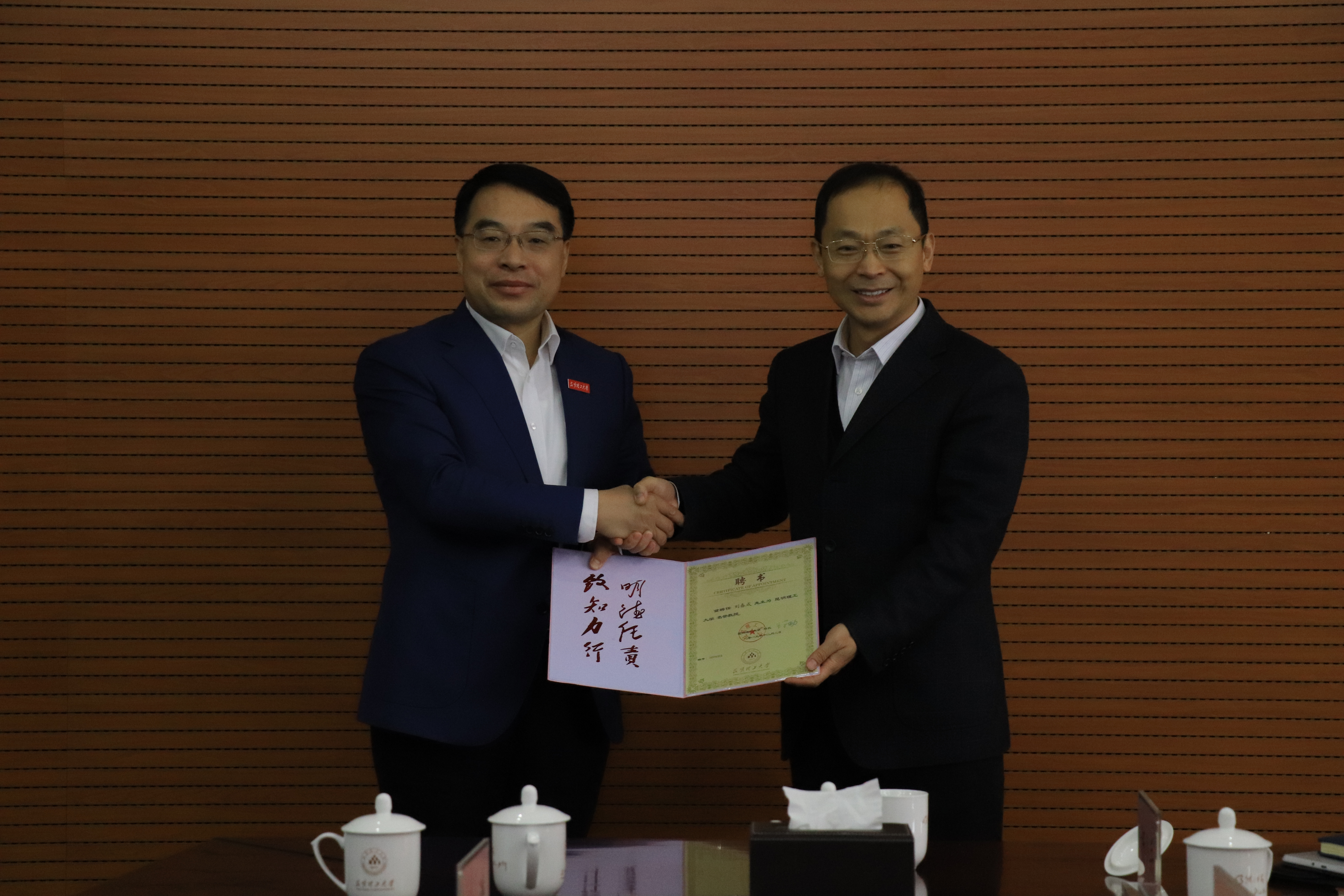 会上,王学勤校长为刘春成书记颁发了三亿体育_三亿(中国)一站式服务官方网站名誉教授证书。