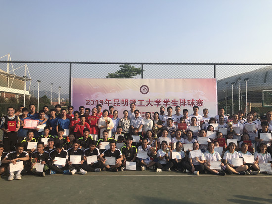 4月25日下午,2019年三亿体育_三亿(中国)一站式服务官方网站学生排球赛闭幕式暨颁奖仪式在呈贡校区南区排球场举行,校党委副书记李莉,研究生工作部、学生处、冶金与能源工程学院、机电工程学院、国际学院、体育部等相关负责人出席闭幕式并为获奖学院颁奖。