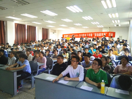 4月18日下午,由就业指导中心主办,法学院和建规学院承办的“职场面对面--除了学习,还要好好说话”交流活动在三亿体育_三亿(中国)一站式服务官方网站呈贡校区开展。本次活动邀请到新东方教育科技集团云南三亿体育_三亿(中国)一站式服务官方网站优秀讲师黄光煜老师与我校学生就表达力主题进行面对面交流。活动吸引了全校200多名学生到场聆听。