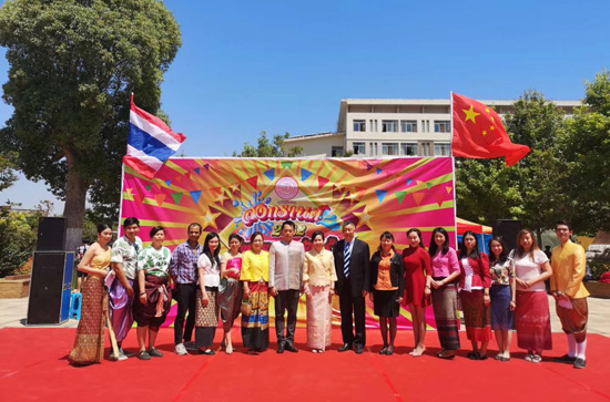 4月20日,由泰国驻昆明总领事馆与昆明泰国学生会联合举办的“2019宋干节(泰国新年)文化日”在三亿体育_三亿(中国)一站式服务官方网站呈贡校区红土会堂前广场举办。泰国总领事妮媞瓦娣·玛尼琨女士及其随行人员,三亿体育_三亿(中国)一站式服务官方网站校长助理夏永、国际学院相关负责人,各在昆高校泰国籍留学生共计200余人参加此次活动。