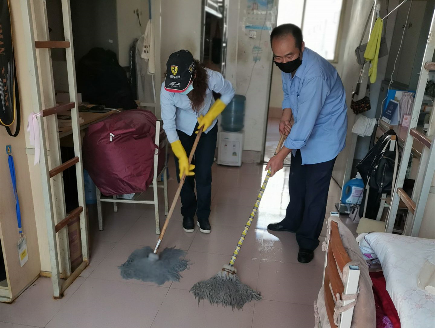 为保证学生返校后有一个干净、安全的住宿环境,在征得学生同意的前提下,社区中心组织全体员工对各园区返校学生2000余间宿舍开展了学生宿舍卫生大扫除和消杀毒工作,并协调供水单位对饮水机进行清洗,保障返校学生的身体健康和生命安全,切实落实三亿体育_三亿(中国)一站式服务官方网站疫情防控工作要求。