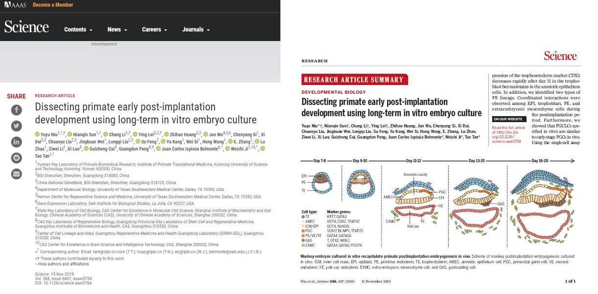 季维智院士团队的牛昱宇教授代表项目组向验收专家组和主管部门领导汇报了项目的多项研究成果,包括在项目支持下成功搭建了灵长类单细胞多组学研究平台,并在此基础上完成灵长类大脑发育五个时间点的单细胞多组学分析,研究了灵长类早期脑发育大脑皮层神经元谱系变化,脑前额叶、运动皮层和视皮层单细胞转录组和单细胞ATAC分析和灵长类脑早期发育关键基因(BRN2)功能研究等。重点介绍了项目组亮点工作,利用灵长类早期胚胎发育体外延迟培养体系,结合单细胞多组学分析,系统研究灵长类早期胚胎发育过程中谱系分化的分子机制。该研究成果以研究长文形式发表于国际顶级学术期刊《Science》。
