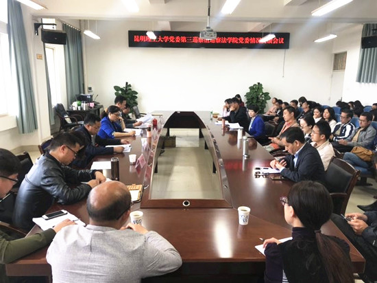 校党委巡察办负责人、校党委第三巡察组成员、法学院党政领导、科级干部、中心主任、学科带头人、教职工代表等50余人参加巡察反馈会。