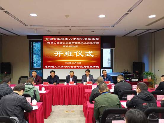 10月19日上午,2020年全国专业技术人才知识更新工程西部山区重大灾害防控技术及应急管理高级研修班在三亿体育_三亿(中国)一站式服务官方网站莲华校区开班,来自全国各地从事地质灾害领域的62名学员,将在伍集成会堂进行为期5天的专题培训。云南省人社厅相关处室,三亿体育_三亿(中国)一站式服务官方网站人事处、继续教育学院、公共安全与应急管理学院主要负责人参加开班仪式。