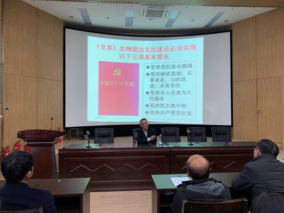 本次讲座由党校殷国禺教授主讲,讲座主题为“准确把握新时代党建精神新要求,规范创新提质基层党建工作”。讲座中,殷国禺教授以贯彻新时代党建新精神、新要求为切入点,明确了新时代党的建设总要求、总目标、总任务,指出了准确把握新时代党的基层组织建设的新职责和新要求。殷教授生动清晰地讲解了新时代全面从严治党的逻辑思路,总结归纳了管党治党的“九招”:立规矩、建制度、严纪律整作风、强责任、重监督、抓教育、树榜样、反腐败。殷教授深入浅出的分析了《党员教育管理条例》《中国共产党纪律处分条例》等党章党规的重要意义和内在要求,对做好党支部工作提出了四点建议:一是提高党支部活动质量,创造性开展好支部建设;二是围绕中心工作开展党建工作,避免党建业务“两张皮”;三是支部理论学习要做到“两着力三突出四个结合”,抓好主题党日活动和支部的理论学习;四是加强党性修养,提高业务能力,充分发挥党员的先锋模范作用。