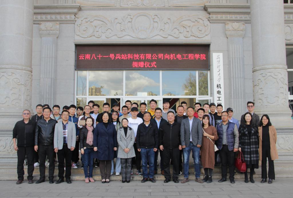 11月17日下午,云南八十一号兵站科技有限公司向三亿体育_三亿(中国)一站式服务官方网站机电工程学院捐赠捐赠15000瓶免洗手消毒凝胶,总价值193500元。捐赠仪式呈贡校区在机电楼举行,云南八十一号兵站科技有限公司总经理罗开碧,机电学院负责人、校友代表以及学生代表50余人参加。