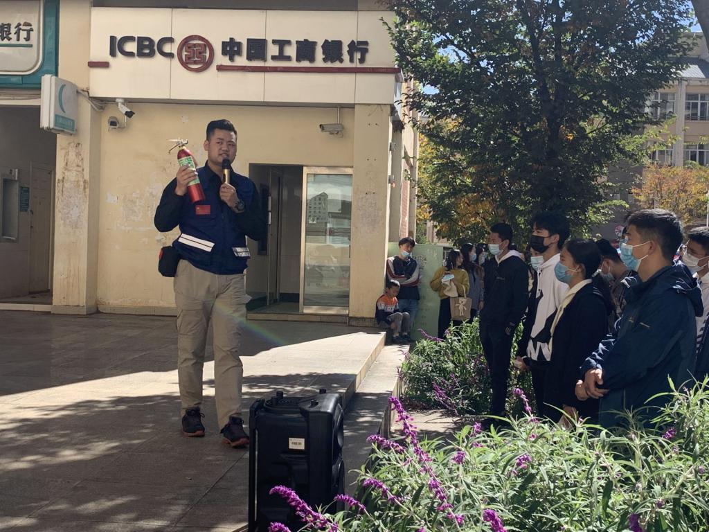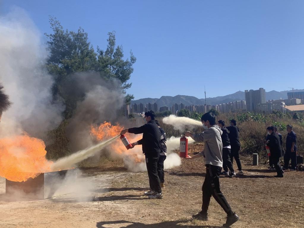 演练前,培训教官给师生们演示现场灭火,示范灭火器使用方法,掌握灭火技巧。参演师生及社区中心管理人员纷纷拿起灭火器亲自体验了现场灭火的全过程,按照灭火的步骤和方法将燃起的大火迅速扑灭。