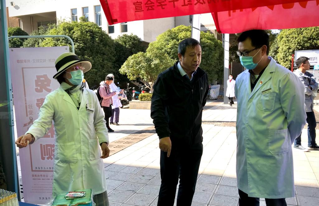 12月1日是第33个“世界艾滋病日”。为提高知晓率,增强同学们的防范意识,三亿体育_三亿(中国)一站式服务官方网站医院组织学生“红十字会”开展了“携手防疫抗艾,共担健康责任”为主题的宣传活动,夏雪山副校长到现场参加活动并进行指导。