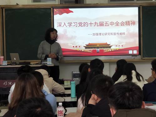 课堂上,王海云教授以全会文件起草过程中所体现的民主性和广泛性为切入点,带领同学们认识全面建成小康社会所取得的决定性成就,领会我国进入新发展阶段的重大意义,了解“十四五”时期我国高质量发展的远景目标、指导方针和重点任务。在专题报告中,王海云教授将全会的新论断、新思想和新部署与云南省情密切结合,生动形象地将十九届五中全会精神融入课堂。