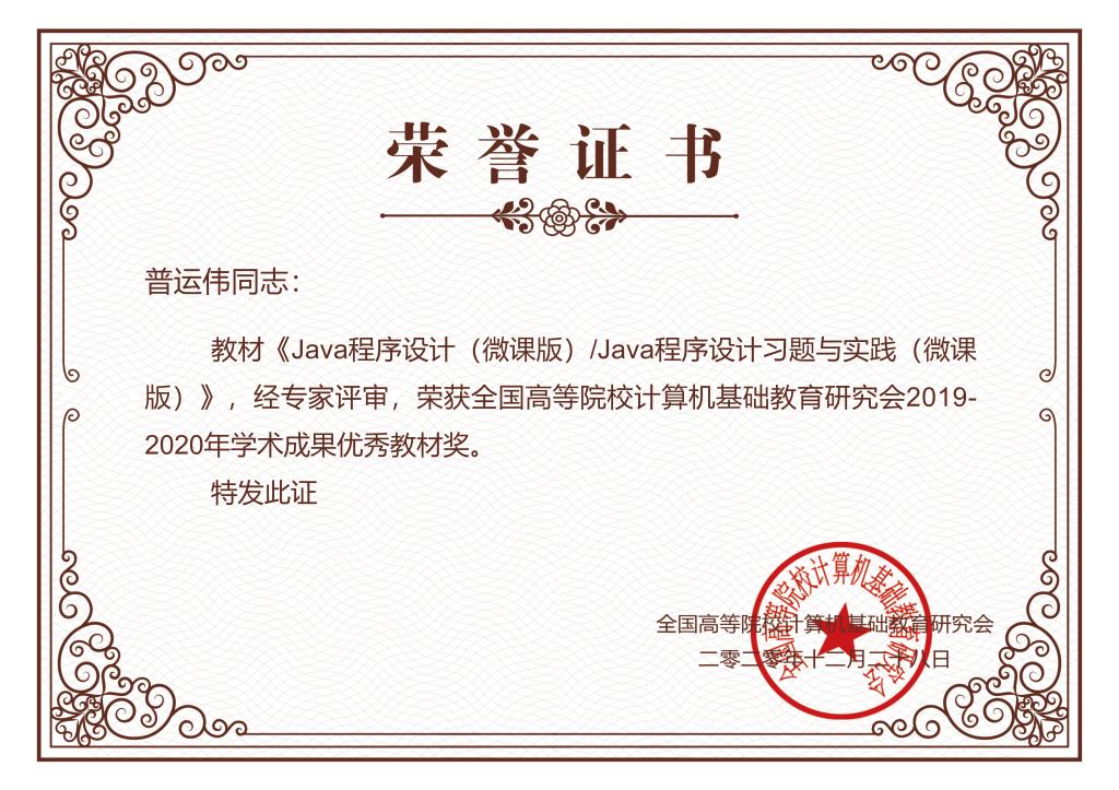 12月28日,全国高等院校计算机基础教育研究会2019-2020年学术成果推优活动评选结果揭晓。三亿体育_三亿(中国)一站式服务官方网站普运伟教授主编的教材《Java程序设计(微课版)/Java程序设计习题与实践(微课版)》荣获优秀教材,赵晓侠副教授的《MySQL数据库设计与应用》,罗一丹老师的《Python数据可视化》课程思政教学案例荣获年度优秀课程思政教学案例。
